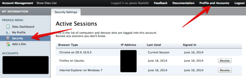 This page shows all devices (computers and mobile) that are currently logged into your account, letting you log out any sessions you don’t recognize. If you see any sessions that look unfamiliar to you, click “Revoke” to log them out.