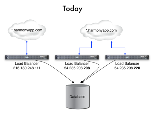 This week, we are switching DNS for *.harmonyapp.com to point to the new servers. We already have about half of this traffic pointing to the new servers, so you’re possibly reading this off the new setup.